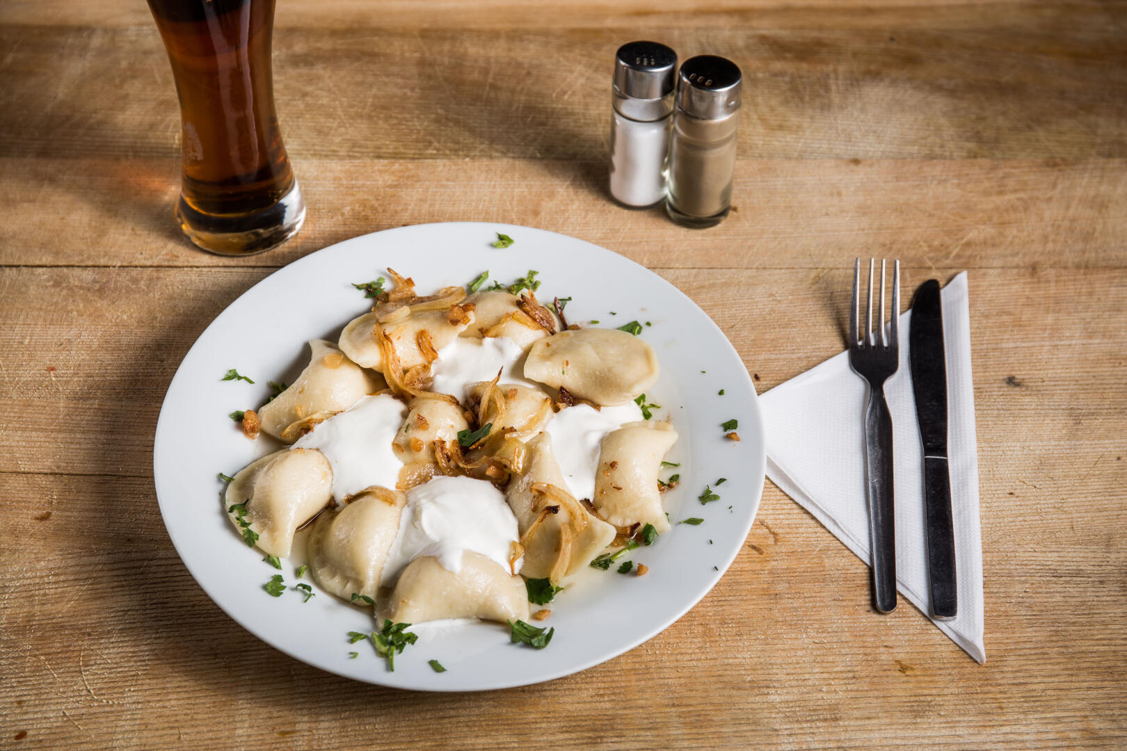 250g. Pirohy plnené bryndzou, slanina, smotana