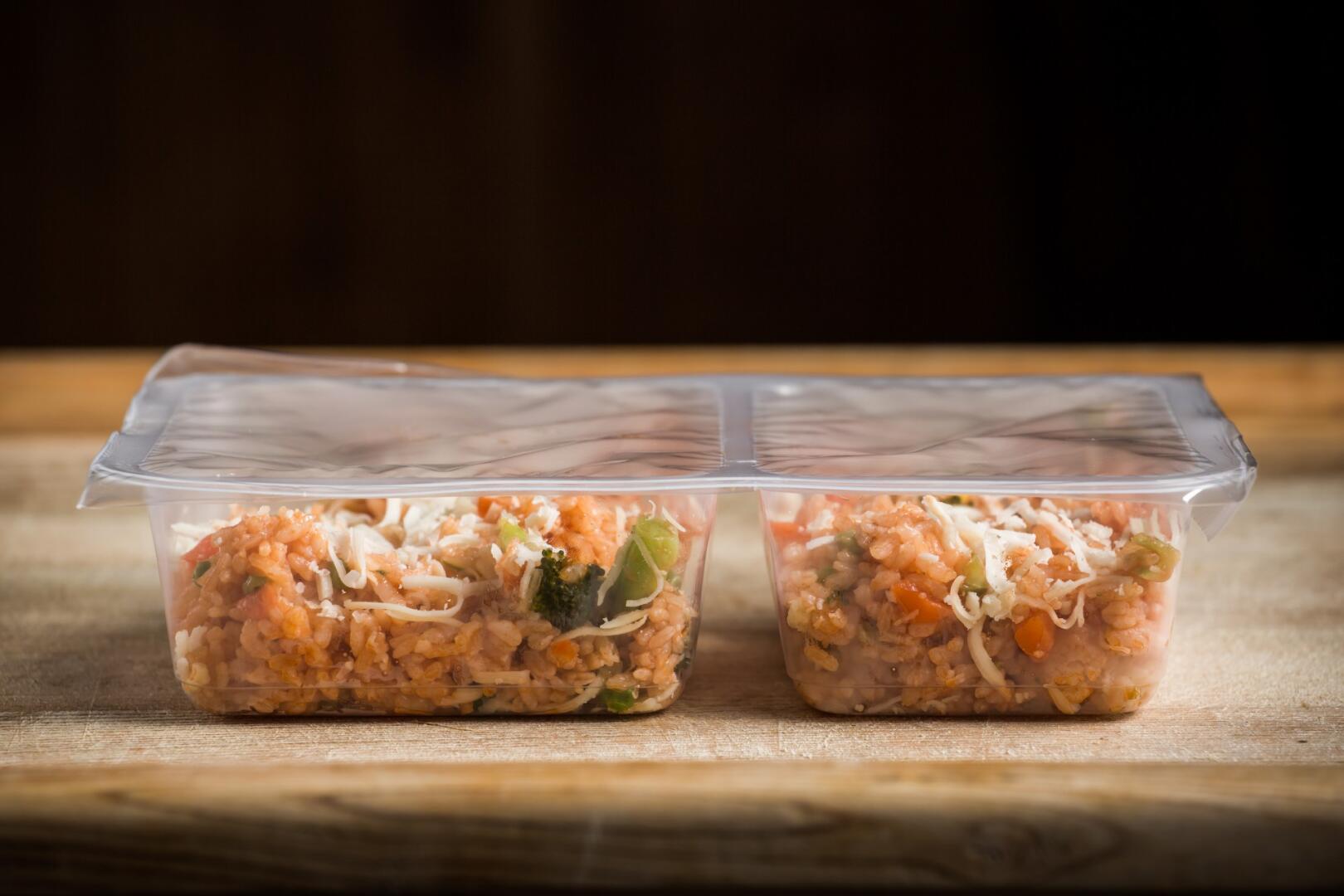 200g. Rizoto s hráškom, mrkvou, kukuricou, paradajkovým pretlakom a syrom